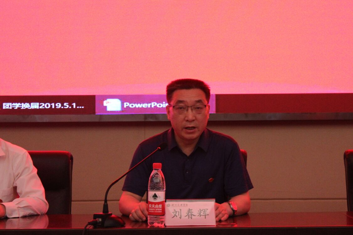 党总支副书记吴辉兵老师对本次大会总结发言,他谈到,作为青年学生,同学们应当更加努力去做好本职工作,以不怕苦,不怕累的精神积极投身于工作中去。同时,团员们也应继续坚持五四精神,将五四精神传递的艰苦奋斗、积极进取的精神应用到生活中的各个方面。最后,也对四位团学常委提出了殷切期望,希望在接下来的时间里,各团学常委应当将自己的精力积极投身于学院的团学发展当中,为同学们解答疑难困惑,服务学生,服务老师!