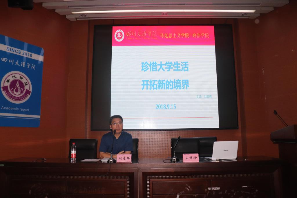 9月15日下午14:30分,金年会jinnianhuicom 政法学院在学术报告厅B厅举行了2018级新生入学教育,马政学院院长王秀珍,党总支书记刘春辉,学工办主任唐幸福出席会议,2018级全体新生列席。本次入学教育由刘春辉书记主讲。
