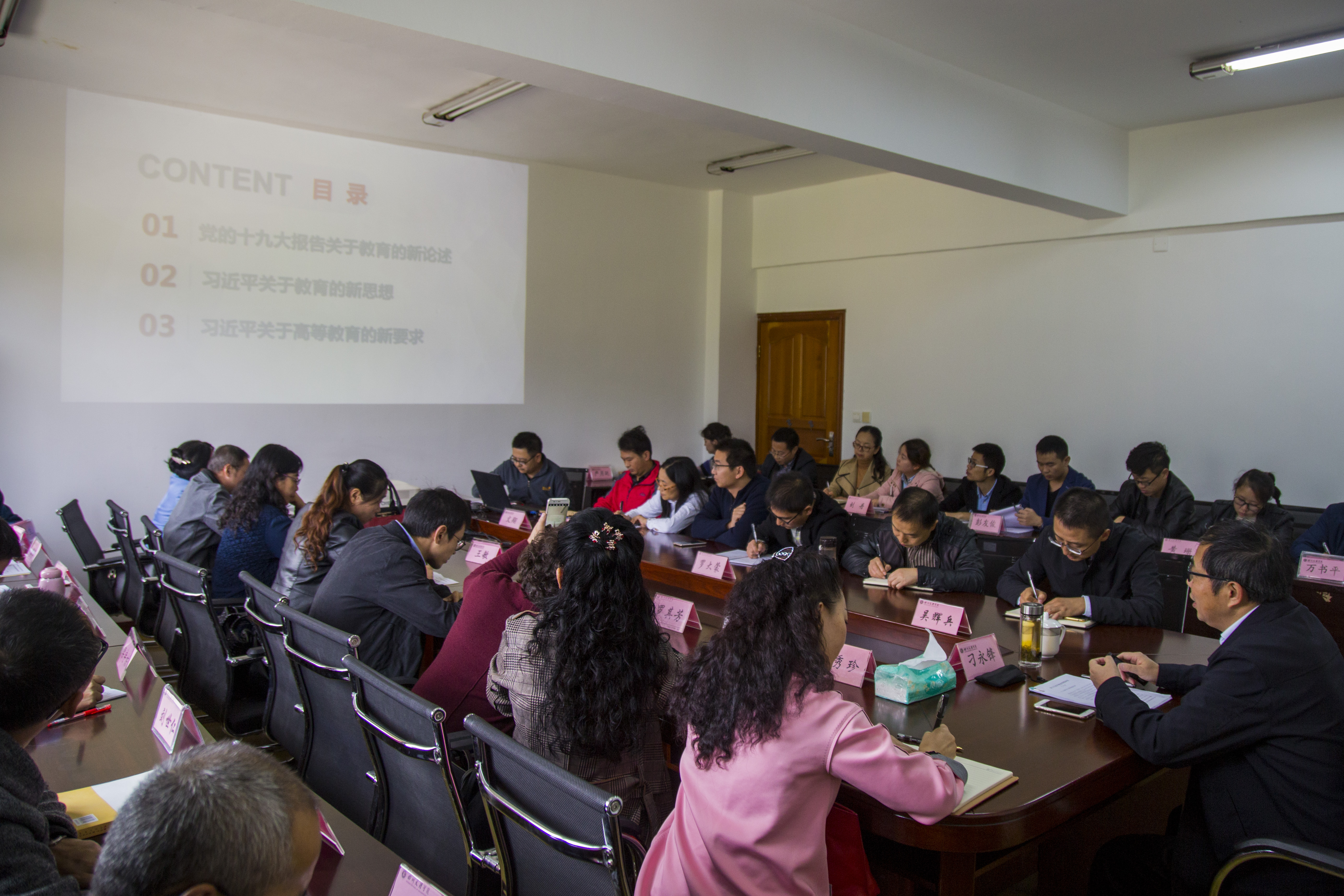 从党的十九大报告关于教育的新论述、习近平关于教育的新思想、习近平关于高等教育的新要求等三个方面作了详细解读和阐释,同时紧密结合全国教育思想工作会精神与学校未来发展实际,对我院学科专业发展的方向提出了建设性的意见和建议。