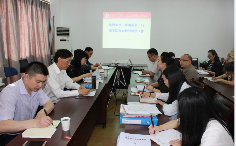 院长王秀珍从学院审核评估工作、学院师资融合与教研室建设、开展特色教研活动、加强教学科研团队建设、加强学风建设、服务地方等工作作了详细汇报。副院长朱德莉围绕本科专业评估、教学大纲的修订、课程建设规划、毕业论文工作、学生实习、青年教师优质课竞赛、教学能力大赛、教学日常行为管理、在建教学质量工程项目建设等分别作了汇报。评估处督导专家陈正平从教学团队建设、师资队伍建设、提升思想政治理论课教学质量、青年教师站稳讲台、改善学院办公条件等提出了建设性意见。教务处长邓杰肯定了学院在专业建设、思想政治理论课“2+1”教学改革和在线考试方面取得成绩,希望两个学院要整合资源,实现深度融合。