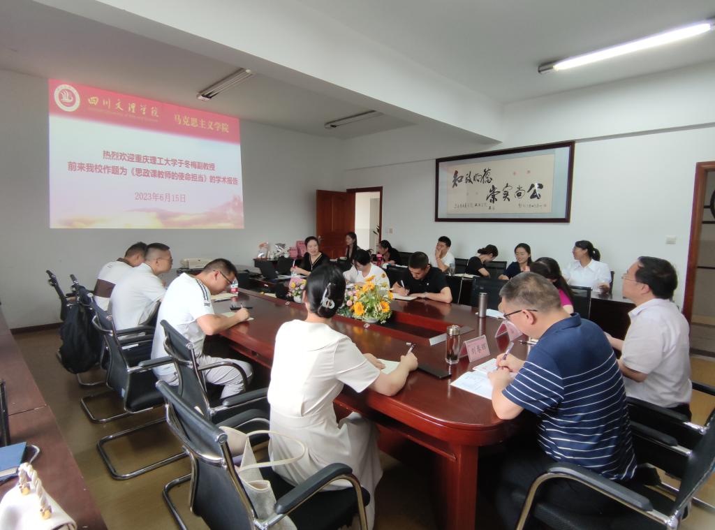 6月15日,重庆理工大学于冬梅副教授应邀在金年会博文楼611会议室作题为《思政课教师的使命担当》的学术报告。金年会jinnianhuicom院长孙杰主持,金年会jinnianhuicom党委书记刘春辉及全院教师参会。