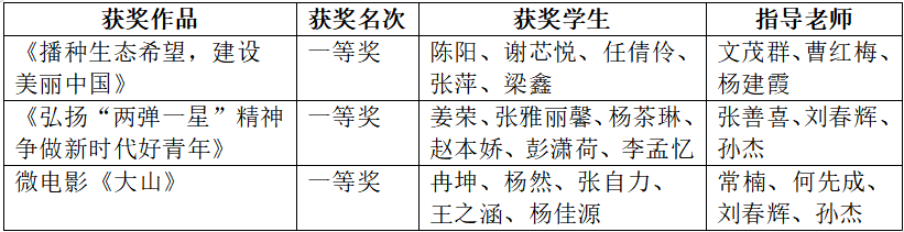 12月27日,中共四川省委教育工委公布了2023 年习近平新时代中国特色社会主义思想大学习领航计划主题教育活动省级评选结果,金年会《播种生态希望,建设美丽中国》和《弘扬“两弹一星”精神 争做新时代好青年》两个作品获得2023 年四川高校大学生讲思政课公开课作品一等奖,金年会微电影《大山》获得2023 年四川高校大学生微电影作品一等奖。
