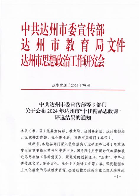 金年会jinnianhuicom2件作品荣获2024年达州市“十佳精品思政课”
