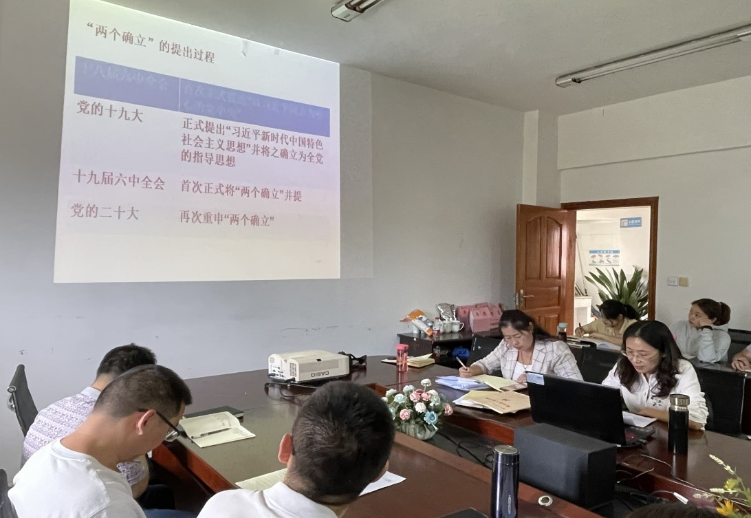 文茂群以《唯物史观视野下的“两个确立”》为题,阐明了“两个确立”的提出过程,围绕三个方面讲授:一是唯物史观视野下的领袖权威;二是唯物史观视野下习近平新时代中国特色社会主义思想指导地位确立;三是“两个确立”是历史和人民的选择。文茂群指出,“两个确立”是维护党的团结统一、增强党的政治领导力、思想引领力、群众组织力、社会号召力的必然要求,是建设社会主义现代化强国、实现中华民族伟大复兴的根本政治保障,必须坚持“两个确立”,自觉做到“两个维护”。