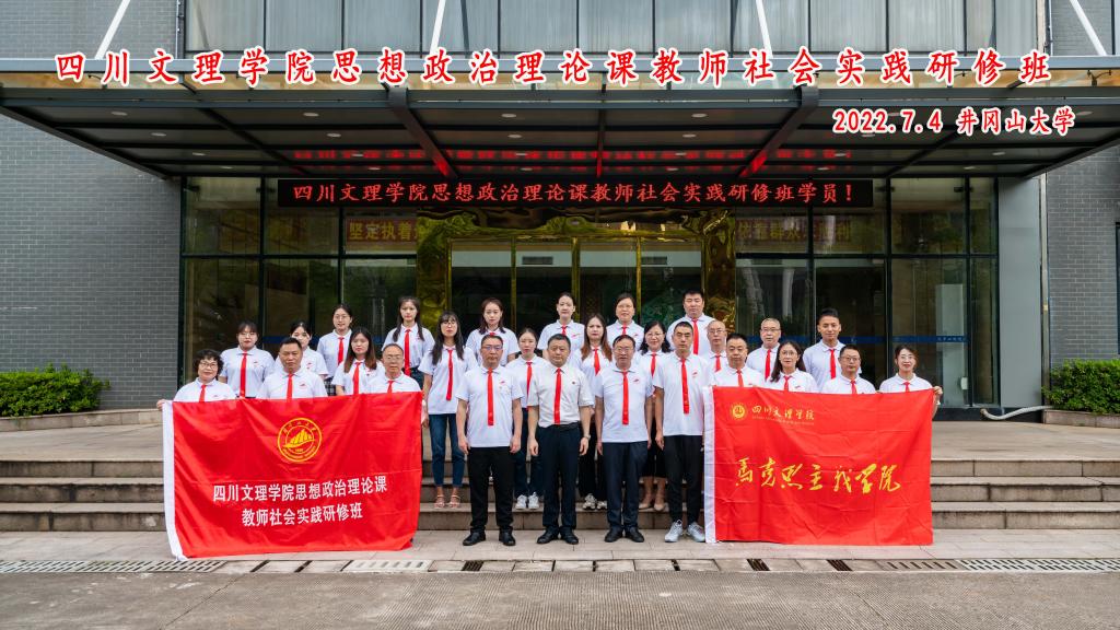 为深入学习贯彻习近平总书记办好高校思想政治理论课系列讲话精神,帮助我院教师进一步了解党情、国情,促进理论与实践相结合,提高思想政治理论课教师的政治素质和业务素质,经学校领导同意,7月4日,我院“思想政治理论课教师社会实践研修班”在井冈山大学顺利开班。井冈山大学李忠教授致辞并为研修班授班旗,我院党总支书记刘春辉和院长孙杰分别讲话,26名专兼职思政课教师参加了开班仪式。