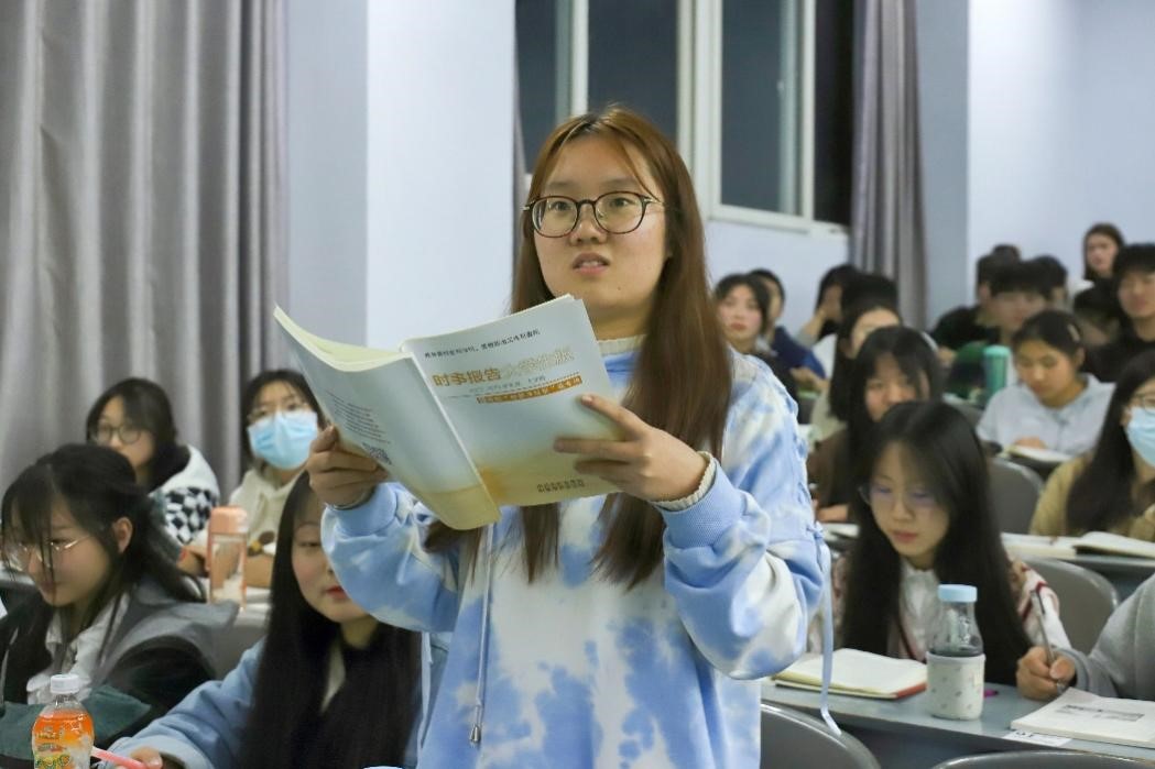 王成端教授强调,当前我国发展进入战略机遇和风险挑战并存、不确定难预料因素增多的时期,必须准备经受风高浪急甚至惊涛骇浪的重大考验,立足新发展阶段,贯彻新发展理念,构建新发展格局,持续推动高质量发展。要紧紧依靠党这个“定海神针”,坚定不移走好自己的路,让人民过上好日子,我们党依靠斗争走到今天,也必然要依靠斗争赢得未来。王成端教授还通过课堂提问的方式,加强与学生的互动交流,增加了课堂的趣味性,调动了学生的积极性。