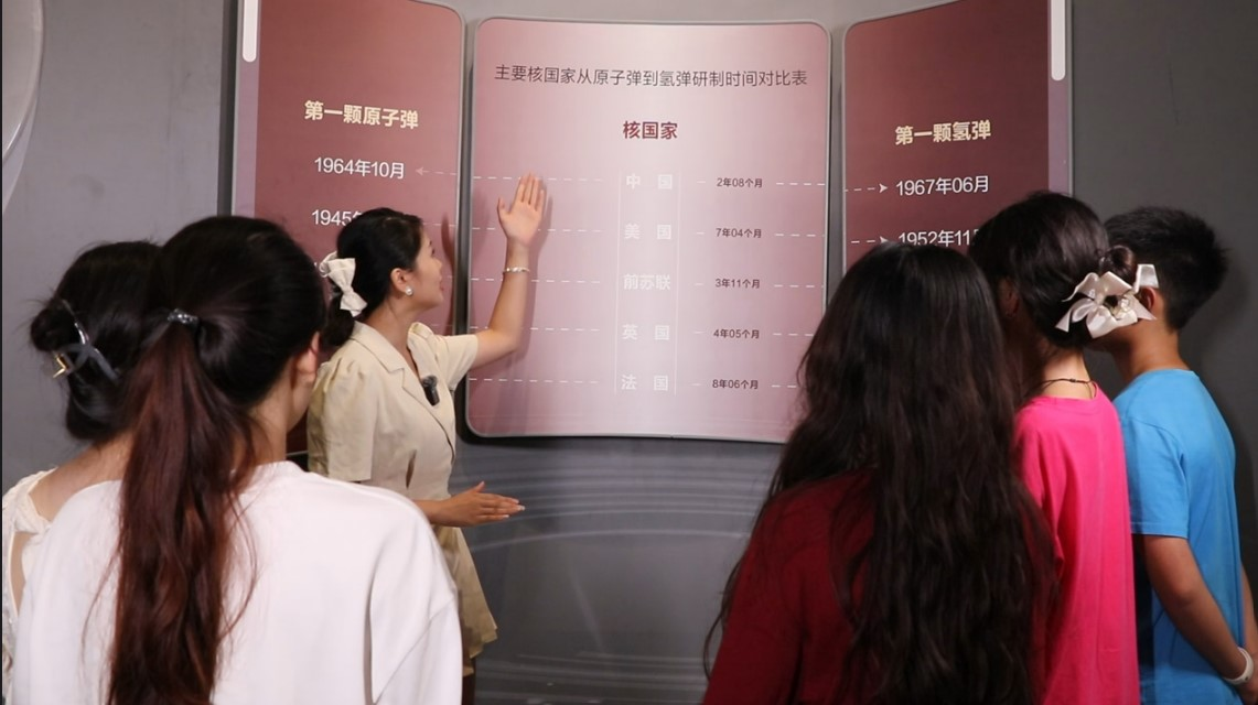 另一方面,为了突出实践性,主讲人紧密结合场馆实际进行理论讲解。在讲解过程中,主讲人置身于神剑园中,顺应教学内容的变化,动态调整讲解位置,灵活运用场馆设施与资料,让理论讲解变得鲜活生动。如在“科研人员舍家为国、奔赴金银滩”的展览图片旁分析“热爱祖国、无私奉献”;在“苏联毁约并撤走专家”的展览图片旁分析“自力更生、艰苦奋斗”;在“多家单位支持配合221基地”的展览图片旁分析“大力协同、勇于登攀”。