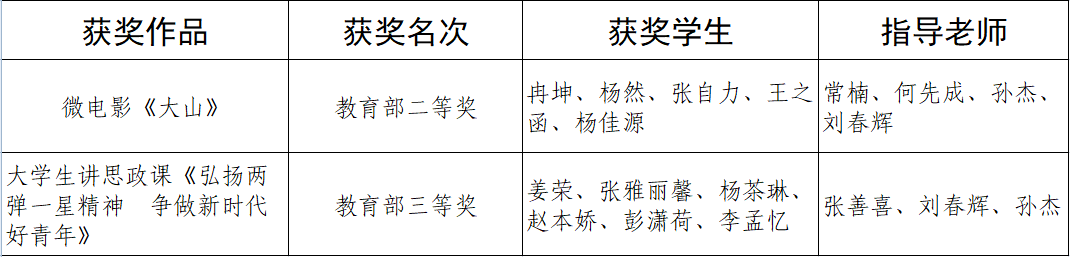 我院原创微电影《大山》、大学生讲思政课《弘扬两弹一星精神 争做新时代好青年》分别获教育部二等奖和三等奖