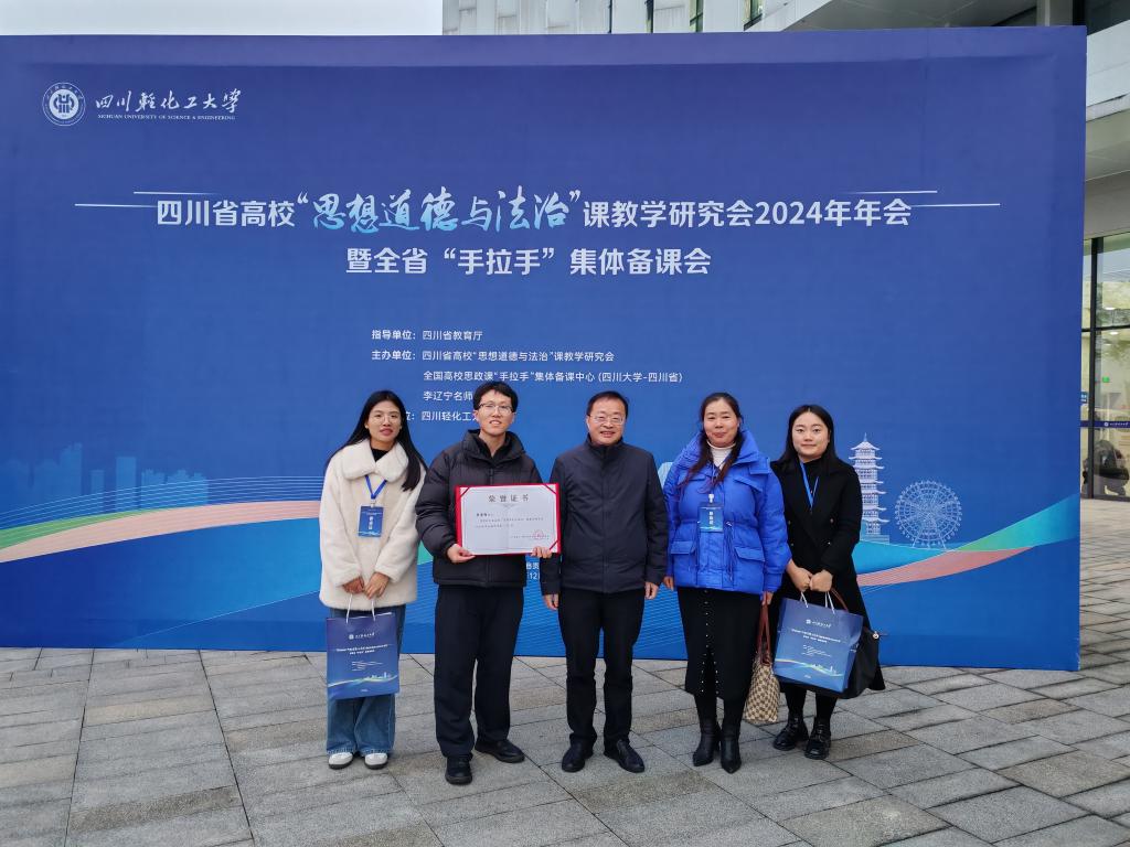 2024年12月13日,四川省高校“思想道德与法治”课教学研究会2024年年会暨全省“手拉手”集体备课会在四川轻化工大学隆重举行。此次大会由四川省教育厅指导,四川省高校“思想道德与法治”课教学研究会、全国高校思政课“手拉手”集体备课中心(四川大学-四川省)共同主办。我院孙杰院长、德法教研室王敏主任、青年教师李崇陌、姚杨、罗荥瀛应邀参会。