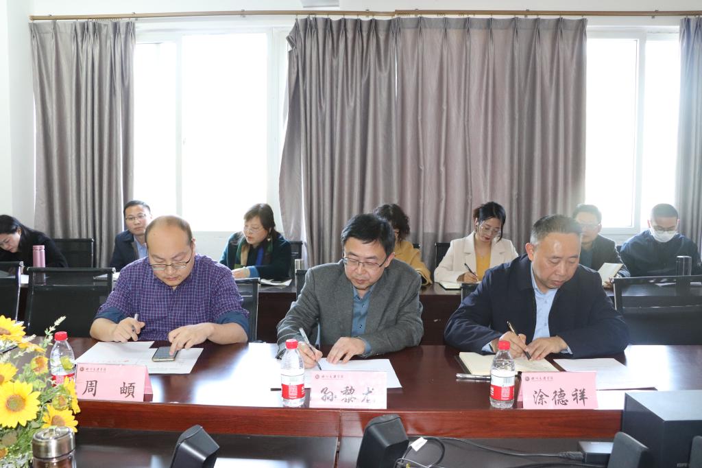 在研讨交流环节,党委常委、组织部部长涂德祥从哲学社会科学研究指向、资源联动共用、校地联动发展、项目联合共研、平台联合共享等方面对我院科研工作提出了良好的意见建议。科技处处长周頔希望马院老师积极参与哲学社会科学研究,争取出高级别的研究成果,为繁荣哲学社会科学贡献思政教师的力量。