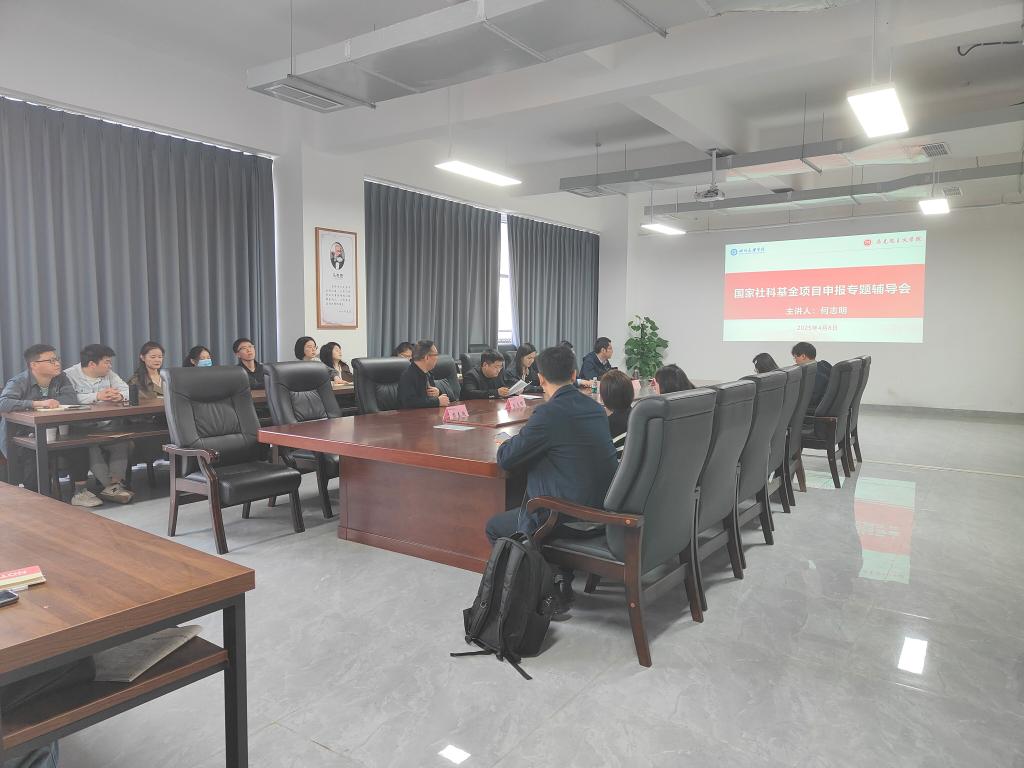4月8日,在莲湖校区东区c108会议室,我院成功举办了一场国家社科基金项目申报专题辅导会。此次会议特别邀请到了四川大学金年会jinnianhuicom何志明教授,为我院教师在国家社科基金项目申报方面进行专业指导,吸引了众多有志于申报项目的博士和青年教师参与。