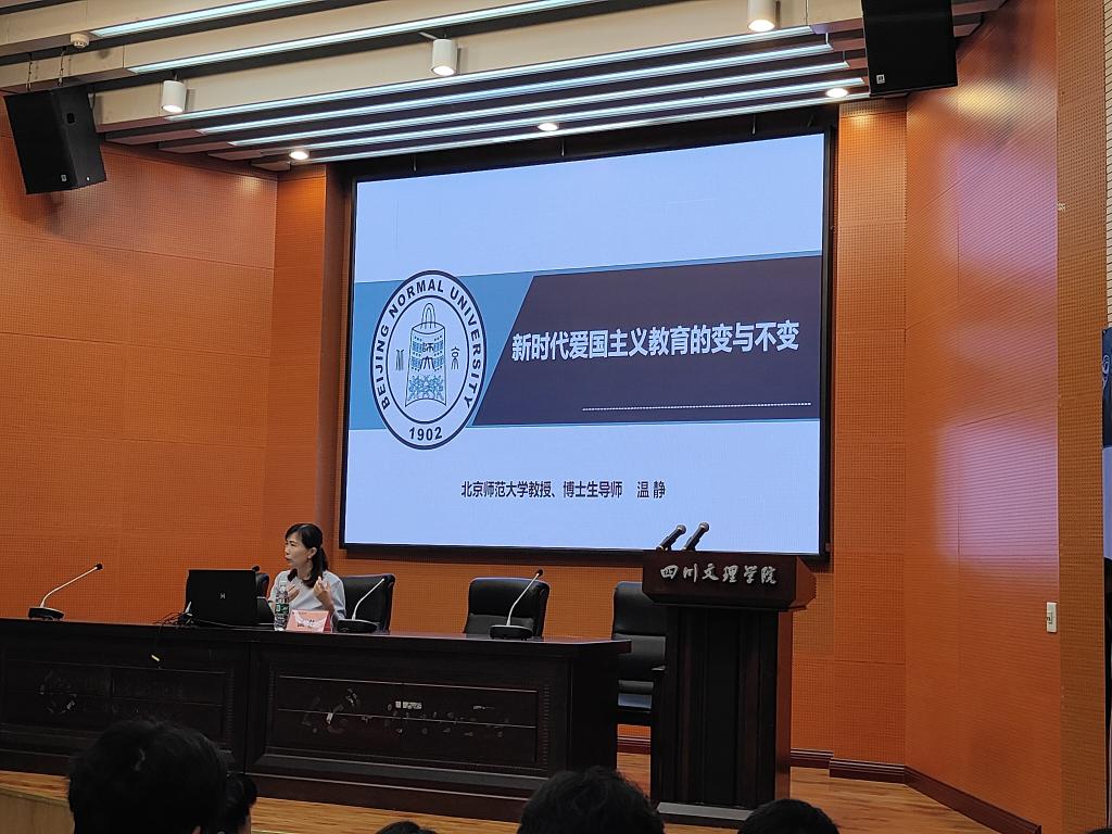5月29日晚,应学院邀请,北京师范大学金年会jinnianhuicom温静教授来金年会作“红漫巴山讲堂”系列讲座第三讲——《新时代爱国主义教育的变与不变》。讲座由学校党委常委、副校长徐晓宗主持。